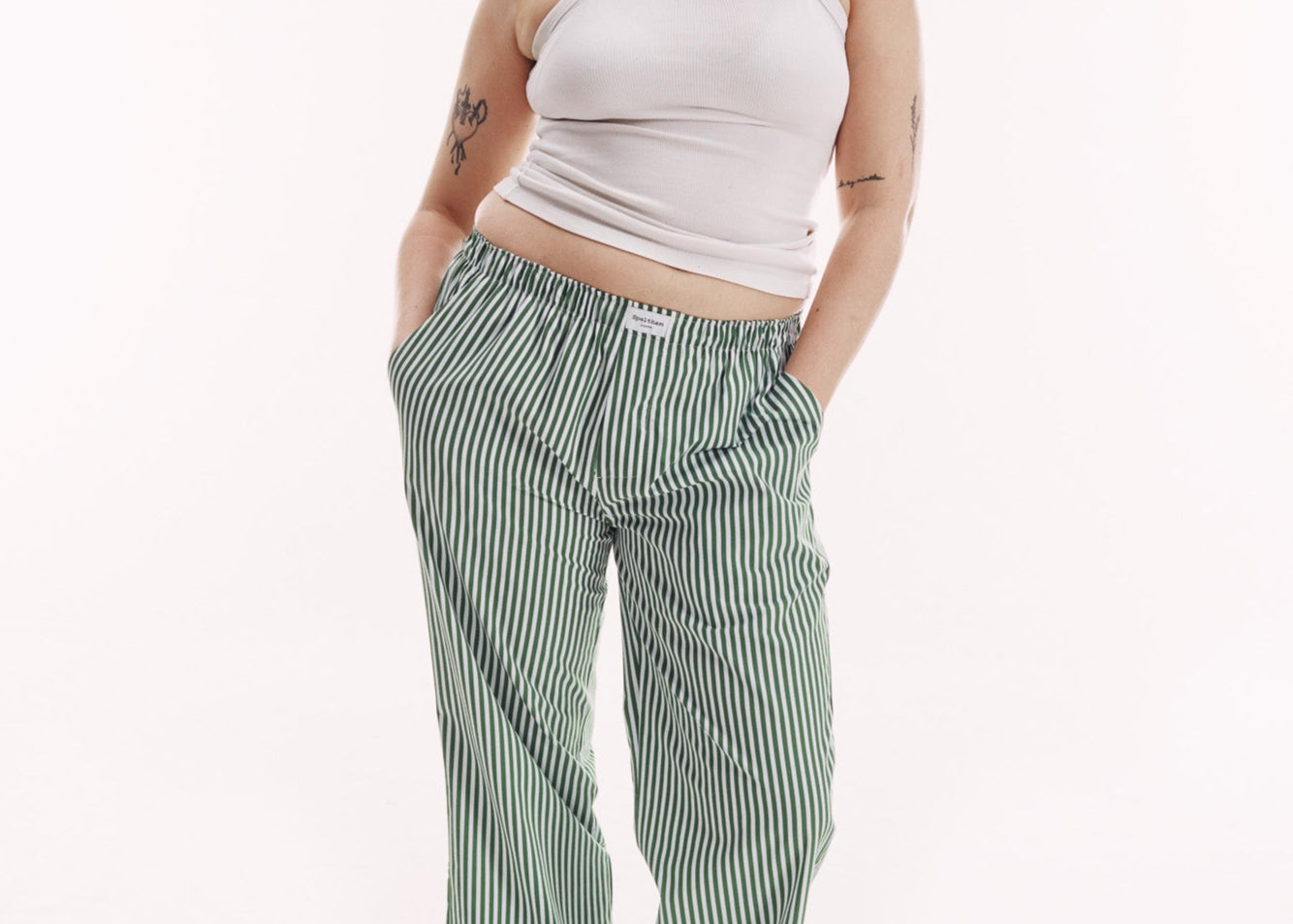 Green & White Striped Unisex Lounge Pants