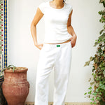 Meet the ultimate Linen Lounge Trouser! Ethically handmade in London in a perfect mid-weight fabric, they're comfy, stylish, and a Spring/Summer essential for anyone who takes weekends and holidays seriously.
