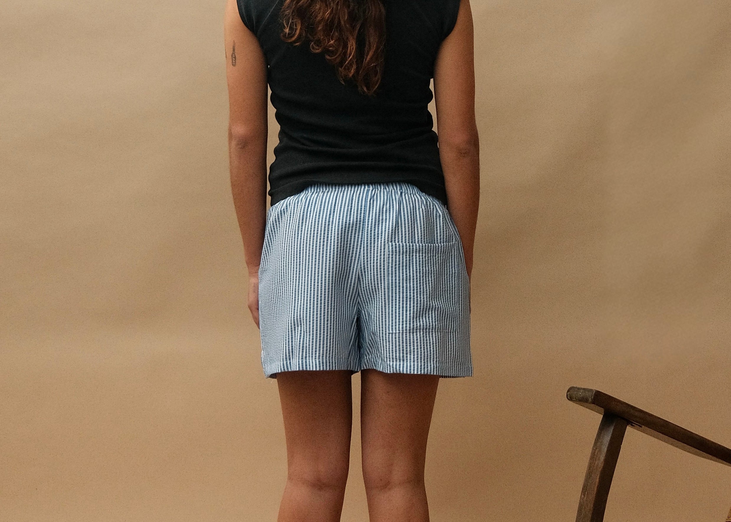 Handmade in London from Cotton Seersucker, our Unisex Boxer Shorts are made for everyday comfort. Soft, breathable and cut for a relaxed fit, they’re ideal for sleeping, lounging or layering under your favourite jeans. Finished with a comfy elastic waistband and handy back pocket, these are a wardrobe staple you'll reach for time and time again.